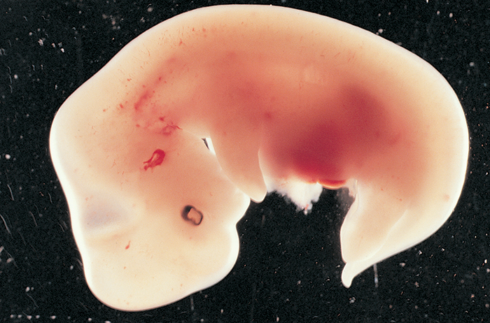 For the first 10 days of the second month, the embryo is still considered an Embryo. The fetal stage officially begins on the 40th day after fertilization. Here, the physical features start to develop more distinctly. These include the facial features and a few joints including the shoulder which may be identifiable on ultrasound examination.